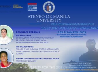 Sinisikap kasi natin magkaroon ng malakas na republika. Salamat na lamang na sa matagal na problema natin ay meron tayong mga nakakamit. Matagal na nating problema ang pagpapasigla ng ating ekonomiya dahil ang pagpasigla ng ekonomiya ay siya ang solusyon sa kahirapan. Kaya kaunlaran ‘yung pinag-uusapan natin sa summit na ito. Mabuti na lamang na sa gitna ng impeachment crisis noon pa tumaas ang ating stock market sa pinakamataas na sigla sa loob ng nakaraang dalawampung buwan. Ibig sabihin noon nandiyan pa rin ang tiwala ng mga nagnenegosyo sa ating bansa. At sa maikling panahon, marami tayong naitaguyod. Itong mga magkakaroon ng bagong buhay at bagong bahay, sila ay bahagi ng naitaguyod nating pinakamalaking housing program at land tenure program sa maralitang taga-lungsod sa buong kasaysayan. Maraming mahihirap, hindi lamang itong mga ladies nating naka-berde sa kanan ko ang nabigyan ng karapatang magkaroon ng bagong tahanan at nabigyang karapatang bilhin ang lupang tinitirikan. At ito ay… Ang dami noon dahil limampung taon, tatlumpung taon na naghihintay. Ang dami ko nang nakitang umiiyak dahil hindi nila naisip na mangyayari ito sa wakas, pero nangyari sa ating administrasyon.